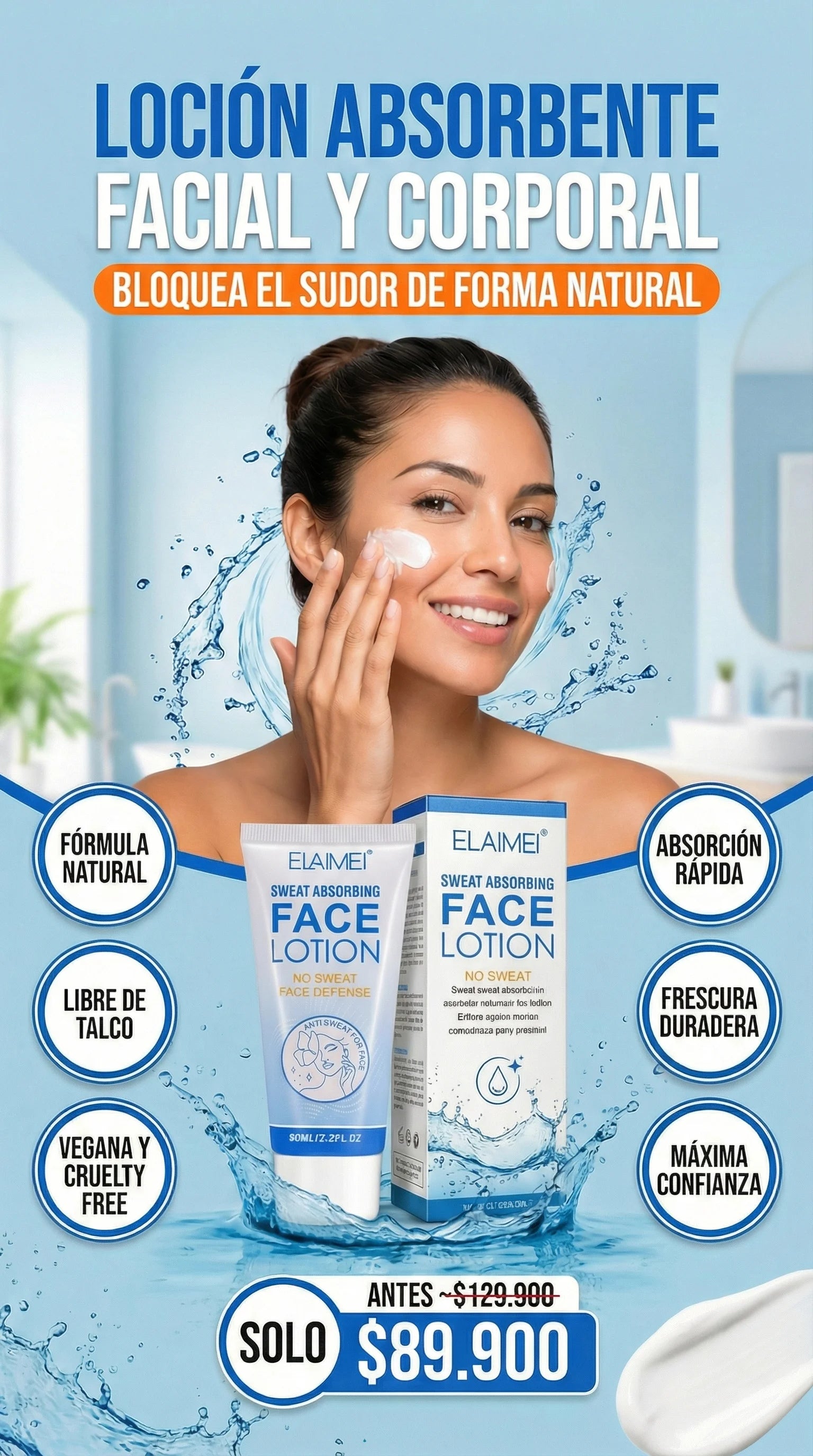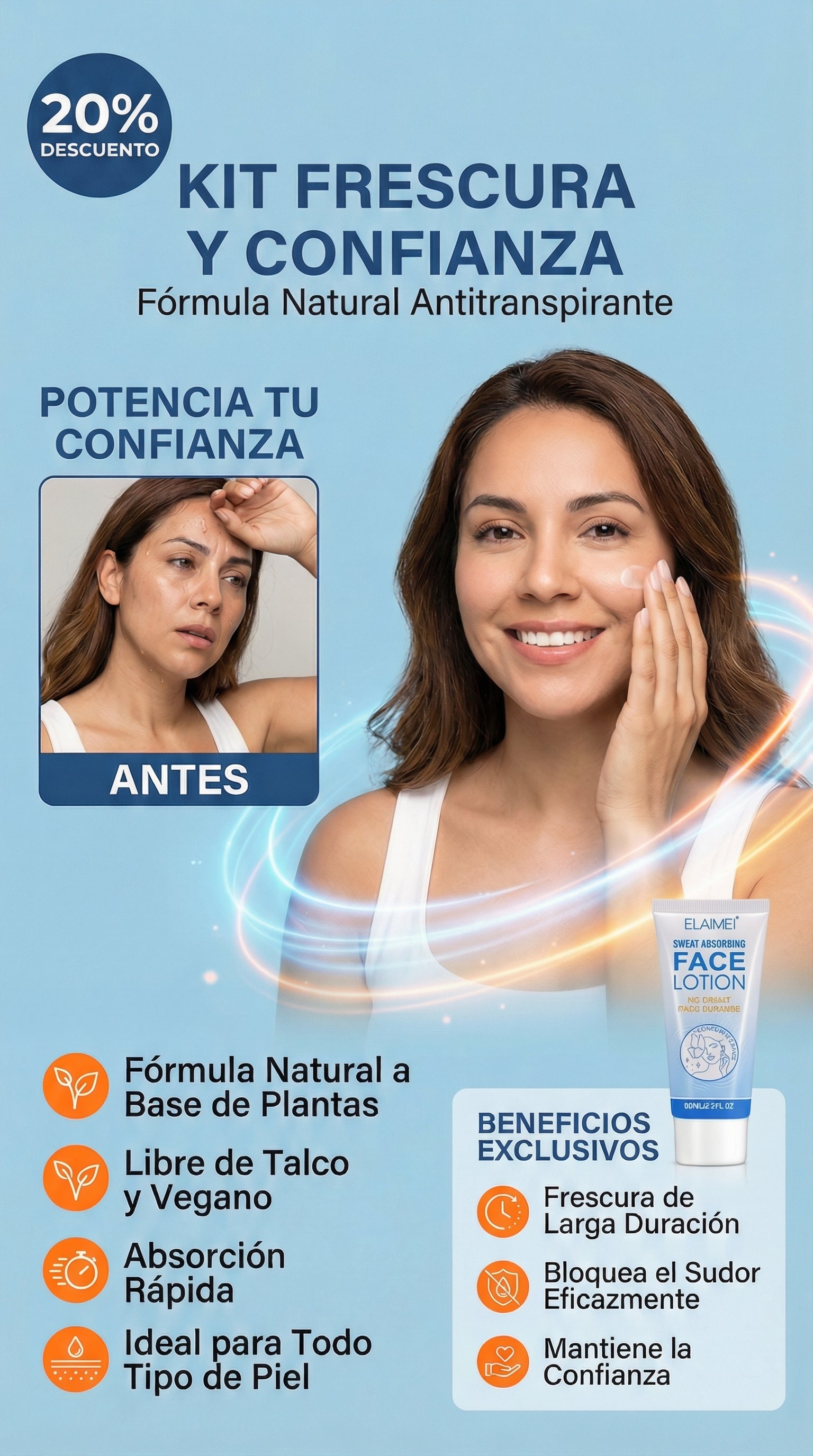FACIAL LOTION | Crema Antitranspirante para Rostro y Cuerpo | Absorbe el sudor 💦🚫