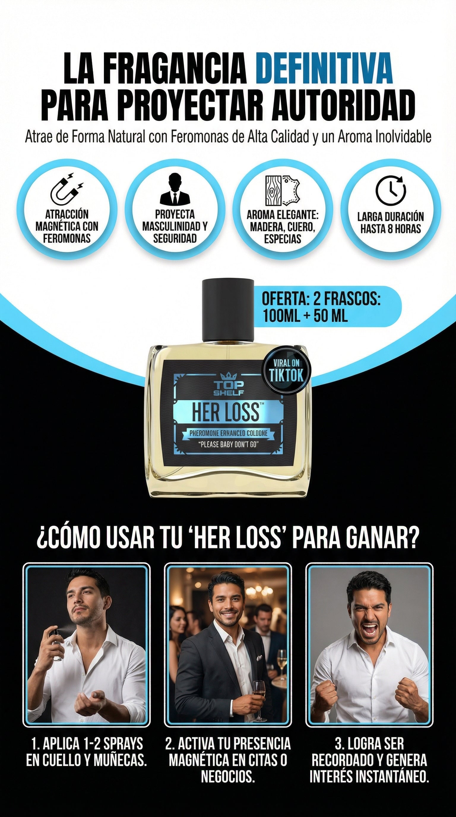 Her Loss | Colonia para ellos, aroma irresistible | OFERTA ESPECIAL: Dos frascos 100 ML + 50 ML